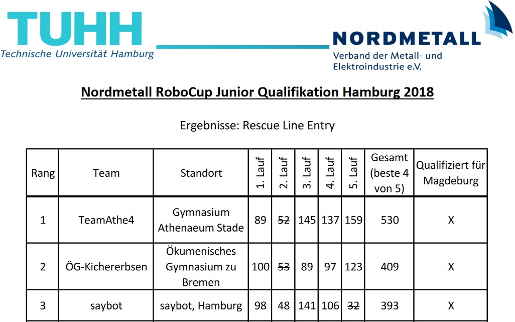 erreichten Punkte. Der verdiente Lohn: Turniersieg und damit die Qualifikation zur Teilnahme am deutschen RoboCup Finale in Magdeburg..